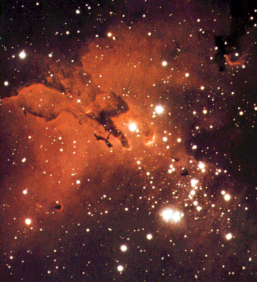 Туманность Орел - облако межзвездного газа, нагретого свечением нескольких горячих звезд типа O или B. Расположенная