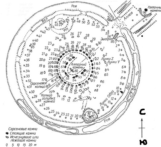 Это схема известнейшего храма и обсерватории древности - Стоунхенджа. Изучая этот памятник культуры, ученым удалось выяснить, что Стоунхендж использовался для наблюдений Луны и Солнца. За другими знаками вопроса Вам удасться (или это в прошлом?) отыскать фотоснимки Стоунхенджа.