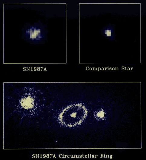 SN1987A. Видно кольцо разлетающегося от звезды вещества.