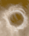 северном полушарии Марса. Он обрамлен ледяным панцирем и туманной дымкой,