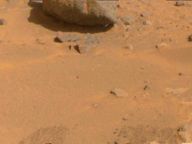 снятый спускаемым аппаратом перед тем, как к камню подошел сам марсоход.