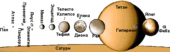 Среди многочисленной свиты Сатурна выделим Титан, Япет,