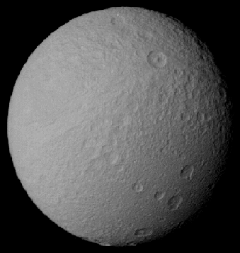 Мимас, Тефия, Диона, и Рея полностью усеяны кратерами.