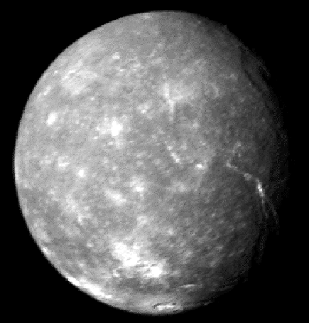 самый внешний из пяти больших спутников, также имеет старую, покрытую кратерами