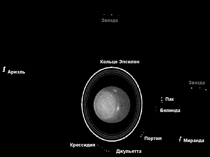 имени Хаббла видно движение со временем спутников Урана. Нетрудно отличить