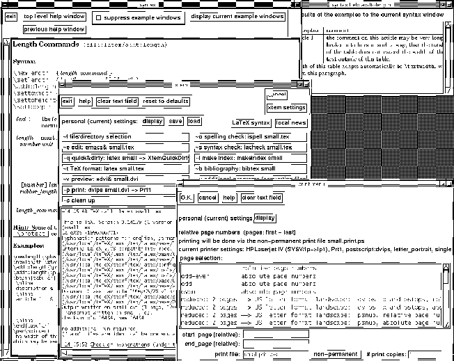 - editor (vi, emacs, ...) including additional windows for the LaTeX-syntax (using hypertext) and examples