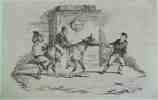 Trois enfants jouant avec un âne
