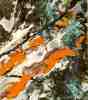In Full Fathom Five the initial impression of a vibrant sea-green hue is relieved on inspection by the variety of shades and inflections which combine to produce an idea of water and of depth. A strenuous black calligraphy loops and curls round the volume of green; mottled and patchy areas of white interact with these, while the green is 'seasoned' with amounts of other colors.