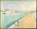 This is a canvas that presents in one compact vision the air of the harbor and of the sea. An impression of stability is supplied by the bollards along the sea wall casting their shadows in the direction of the channel. The rest is infinity, the infinity of a perspective in an elegant parabola, seemingly a prelude to the immensity of the sea, here perfectly calm and inducing to calm. The free, full, modulated space which cuts the painting in two gives off utter serenity: the lighthouse, the boats at anchor, and the harbor cut across by one sweeping diagonal to provide the contrasting movement.