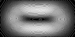 But, beneath the shimmery dark lurks something very fascinating: in a very compressed section of the grayscale are transitions and it is the aliasing mathematical error between them that we are seeing here. Kind of the reverse of the De-Moire document, this one generates great controlled Moire interferences.