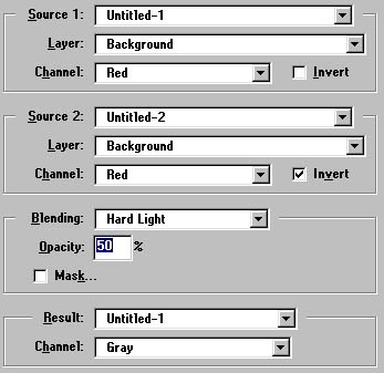 Now duplicate the image cause we will need 2 copies for calculations. (Image/Duplicate) You have images called Untitled-1 and Untiled-2 now. Switch to Untitled-1 and blur it with setting of 2. (Filter/Blur/Gaussian Blur.../2.0) Now switch to Untitled-2 and blur it with setting of 4. (Filter/Blur/Gaussian Blur.../4.0) Now Filter/Other/Offset... 3,3.