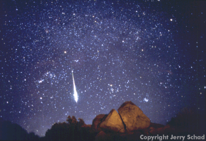 Explanation: Meteors will be flashing across your skies over the next two nights. Specifically, the Perseid Meteor Shower should be at its best just before each morning's dawn. Observers at dark locations might see as much as a meteor a minute. Perseid meteors are bits of dirt that blew off Comet Swift-Tuttle and that burn up as they fall to Earth. Exciting expectations of a new filament in the Perseids might be tested this year. Pictured above is a meteor from the most active meteor shower of last year: the Leonids. Pictured above, a Leonid meteor was caught in November outshining even the brightest stars over the Anza-Borrego Desert in California. The Leonids will peak again this November and might provide an ever better show.