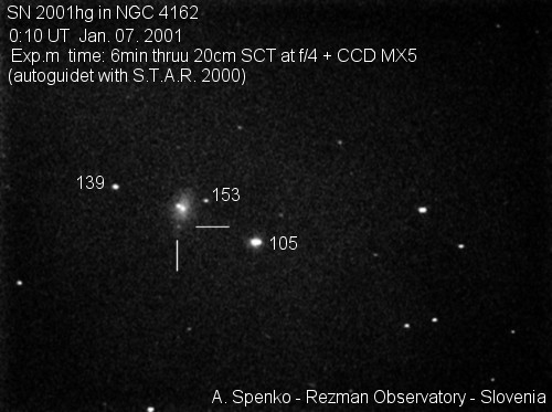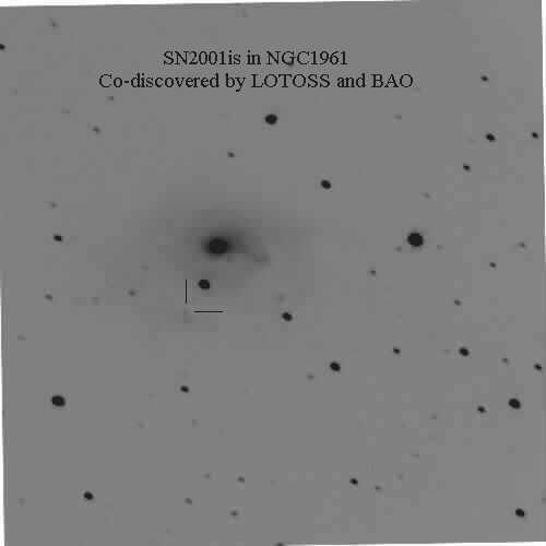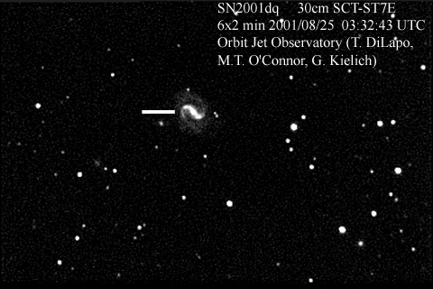 This data comes from IAU Circulars and occasionally more data will be provided on IAU's Astronomical Headlines page. An archive of the 2001 updates to this page is available. This is a list of the SN discovered in 2001. For supernovae that are still visible, please look at the main page. For more information, you can look at the following Supernova Catalogs: