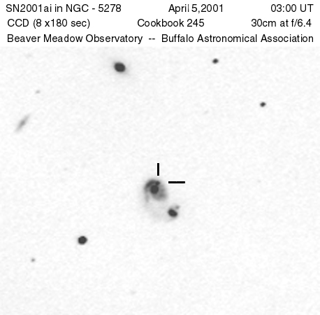 This page is devoted to information on Supernova 2001ai in NGC 5278 Basic information on this SN, including the last reported brightness, on this Supernova can be found on the main page. Information on the original web pages for many of these images can be found on the Supernova links web page.