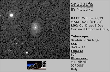 This page is devoted to information on Supernova 2001fa in NGC 673 Basic information on this SN, including the last reported brightness, on this Supernova can be found on the main page.  Information on the original web pages for many of these images can be found on the updates and links web pages.