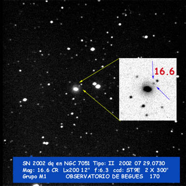 This page is devoted to information on Supernova 2002dq in NGC 7051 Basic information on this SN, including the last reported brightness, on this Supernova can be found on the main page.  Information on the original web pages for many of these images can be found on the updates and links web pages.