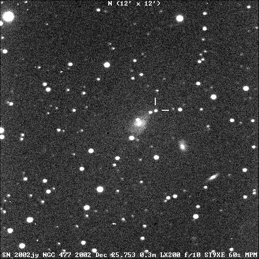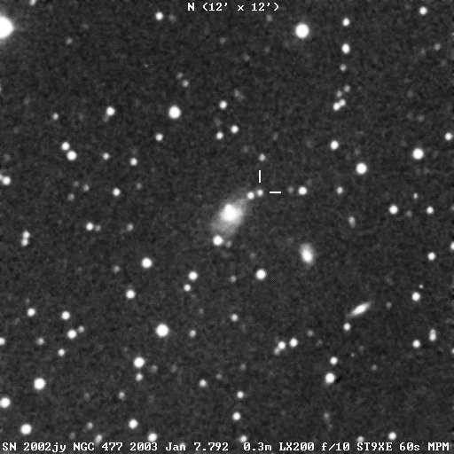 This page is devoted to information on Supernova 2002jy in NGC 477 Basic information on this SN, including the last reported brightness, on this Supernova can be found on the main page.  Information on the original web pages for many of these images can be found on the updates and links web pages.
