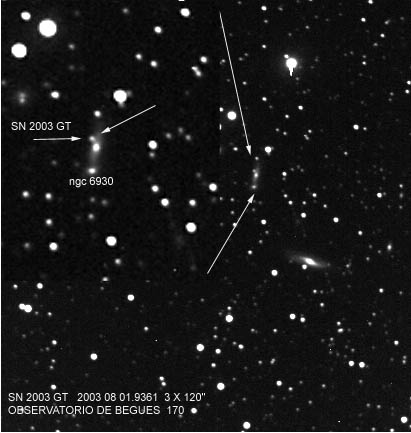 This page is devoted to information on Supernova 2003gt in NGC 6930 Basic information on this SN, including the last reported brightness, on this Supernova can be found on the main page.  Information on the original web pages for many of these images can be found on the updates and links web pages.