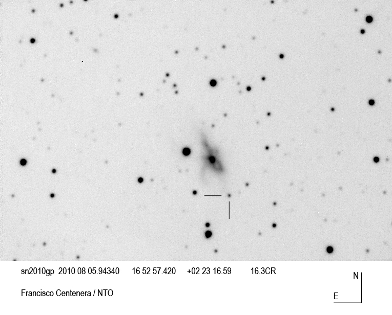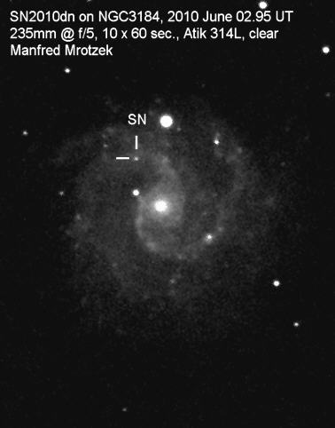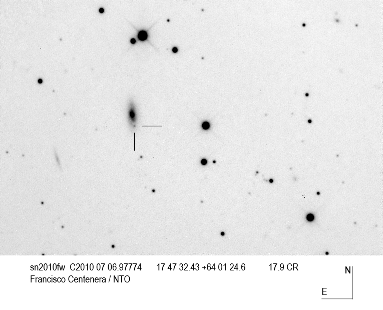 This is a partial list of the SN discovered in 2010. Since 2010 is still ongoing, please look at the main page for the latest data.   Note that Extra galactic Novae have been moved to a special Extra galactic novae page.   For more information, you can look at the following Supernova Catalogs: