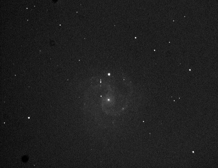 Located of the center of the host galaxy (Discovery image) (Joseph Brimacombe image)