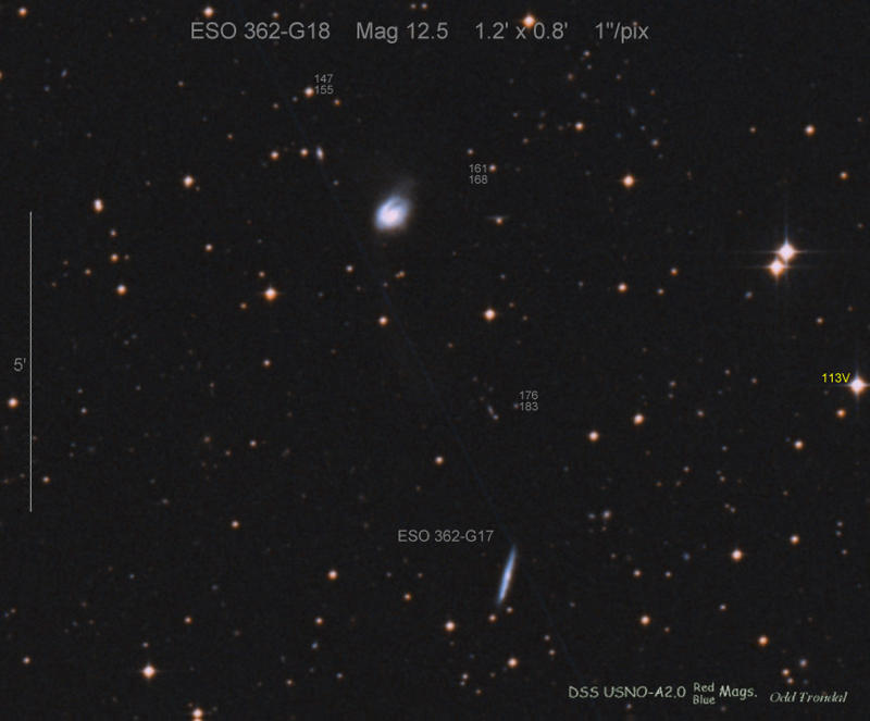 Located 6".5 west and 5".1 north of the center of ESO 162-2 (Discovery image (Discovery page)) (Joseph Brimacombe image) (Joseph Brimacombe image)