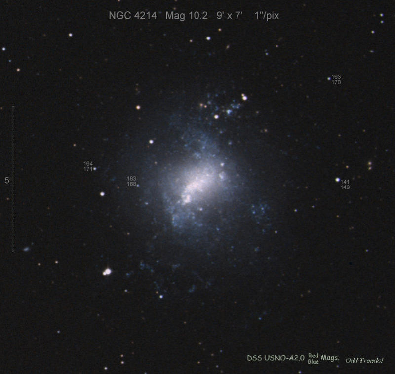 Located 20" east and 27" north of the center of NGC 4214 (Discovery image) (Joseph Brimacombe image color) (Joseph Brimacombe image color, wide field) (Toru Yusa image) (Joel Nicolas image)