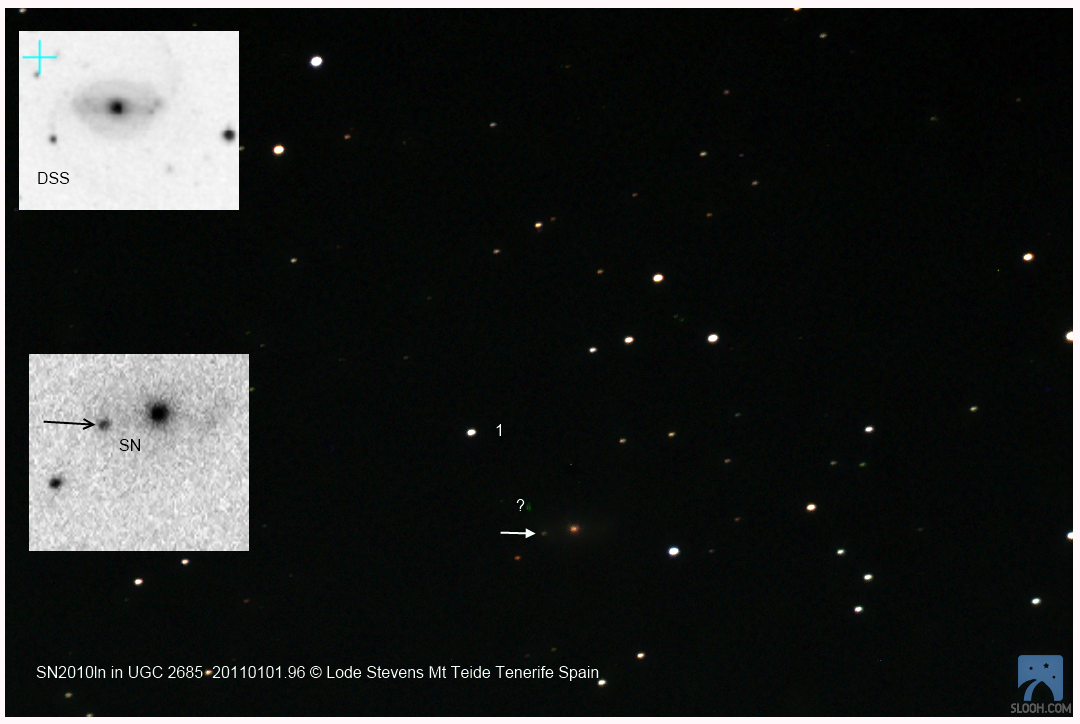 Located 21".6 east and 2".4 south of the center of UGC 2685 (Joseph Brimacombe image (wide field)) (John Briggs image) (Lode Stevens image) (JM Llapasset image) (JM Llapasset image) (Joel Nicolas image) (Enrico Prosperi image) (Enrico Prosperi image) (Enrico Prosperi image)