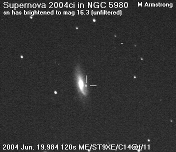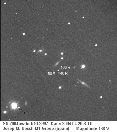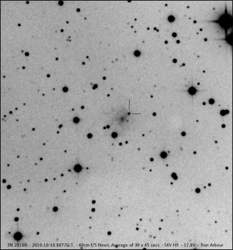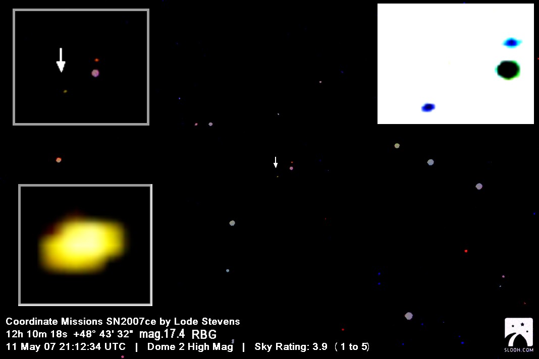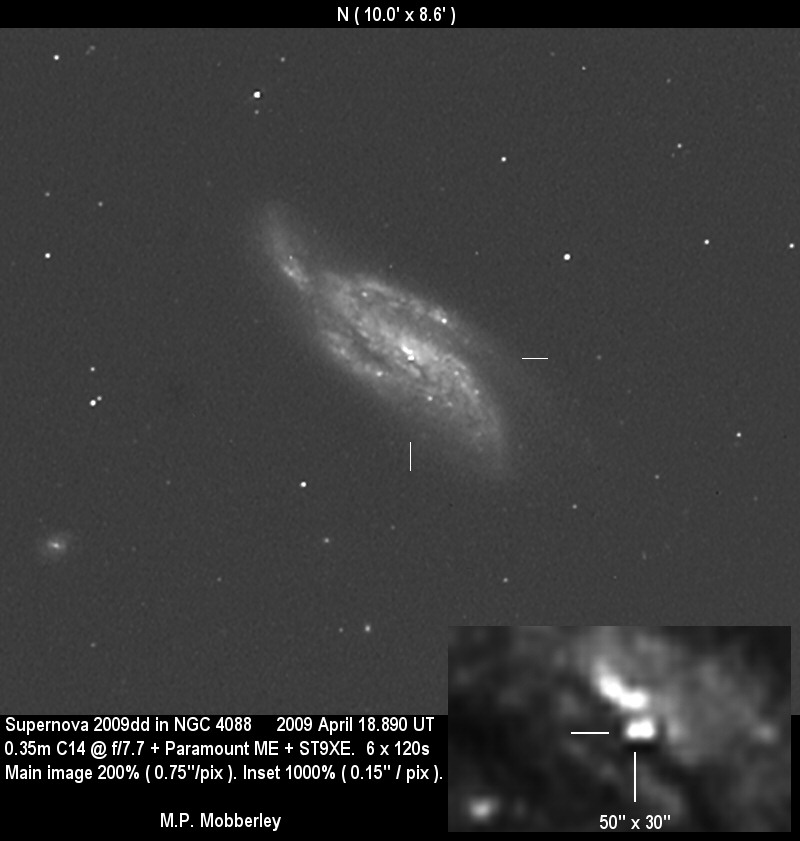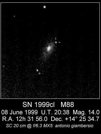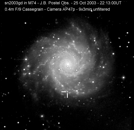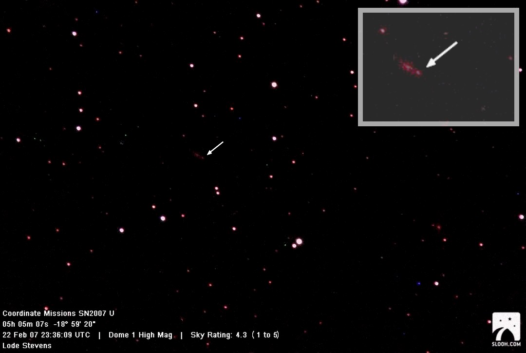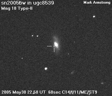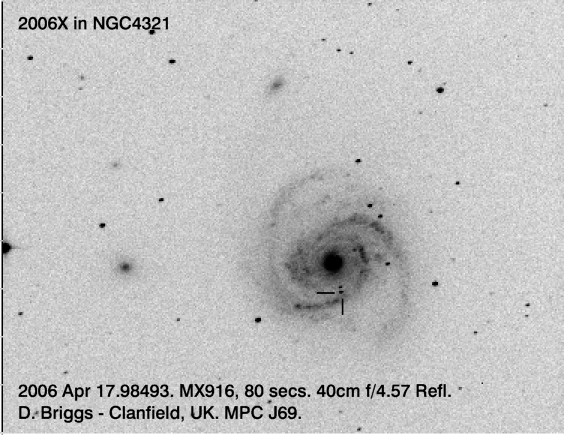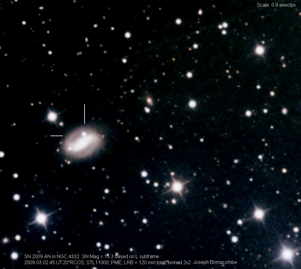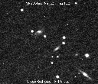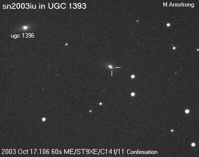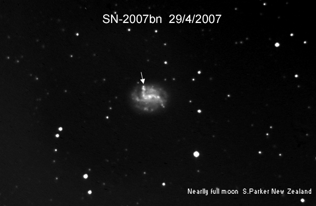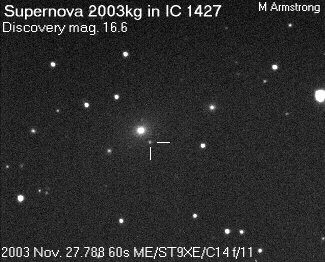 On this web page you will find a list of all the images that have been e-mailed to me for the Bright Supernovae webpages. If an image already exist on a web site, I will usually just create a link to it. However for people who do not have web sites I will accept images which I will then publish on my pages (which I sometimes crop). It should be noted that these images were given to me for use on the web page with the understanding that the copyright remains with the person who originally took them. My thanks to all of the people who donated images. For a list of the best SN images I have found out on the net, please check my Best SN images on the net page.