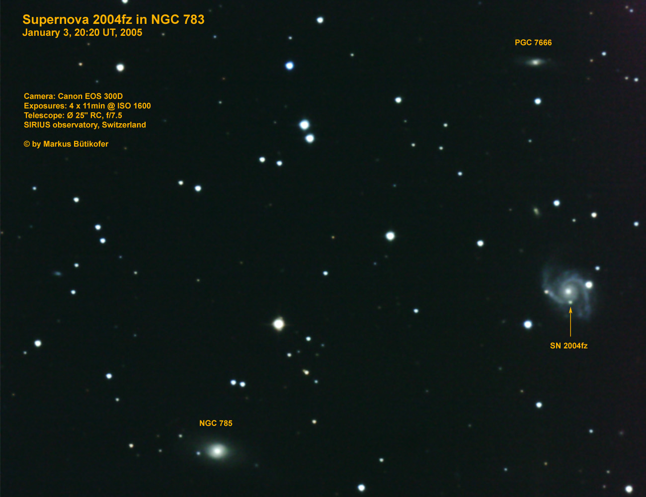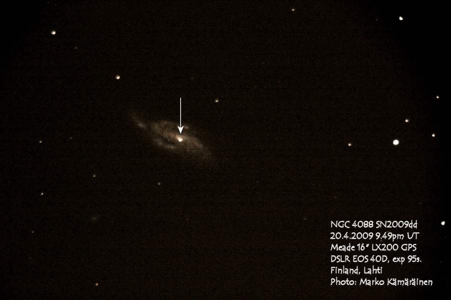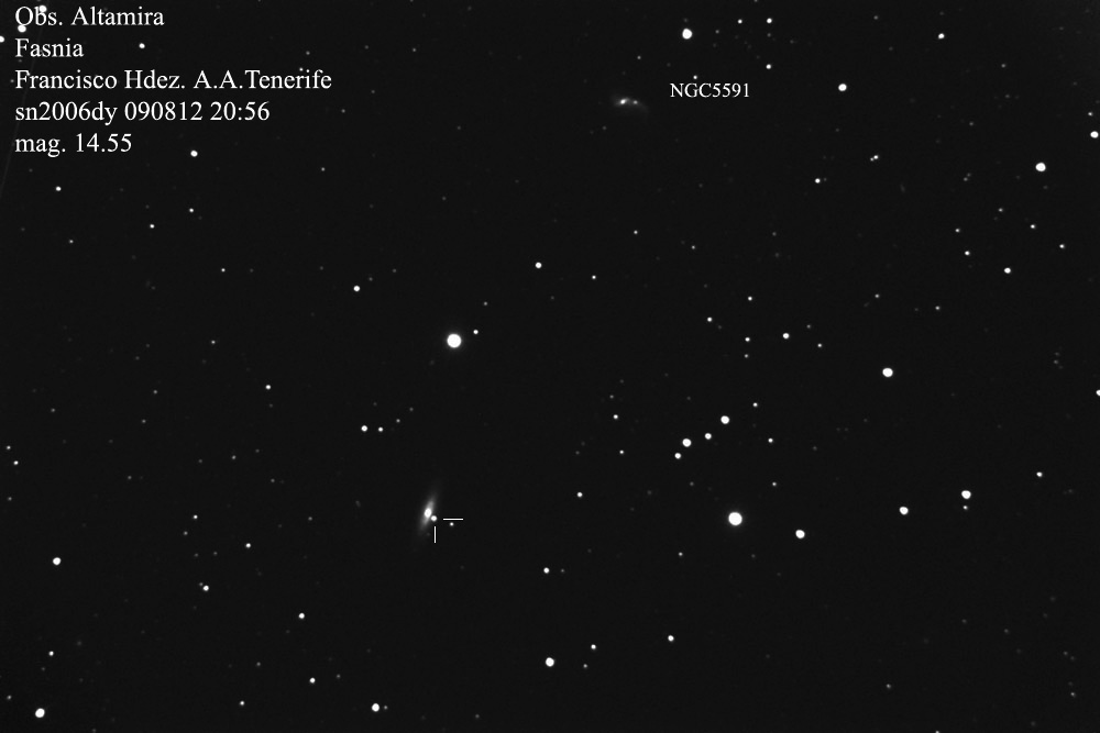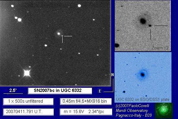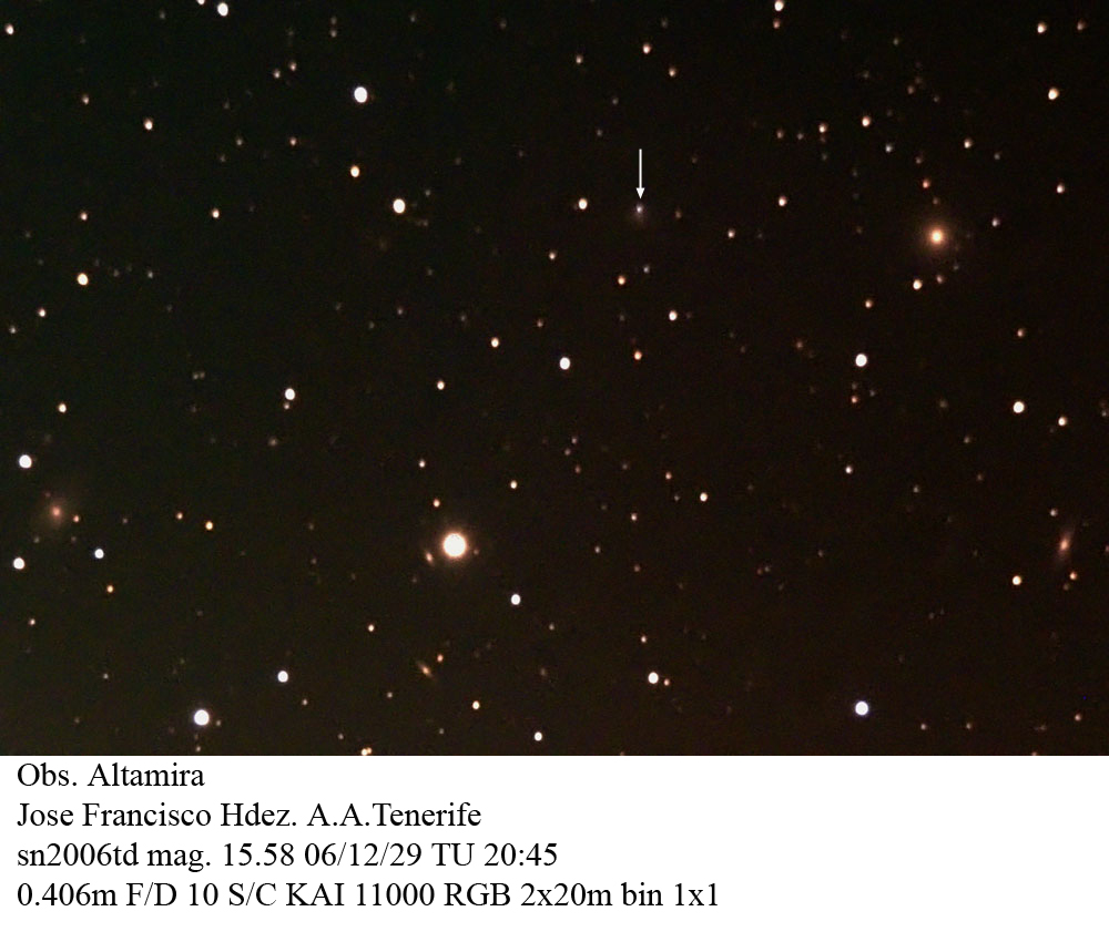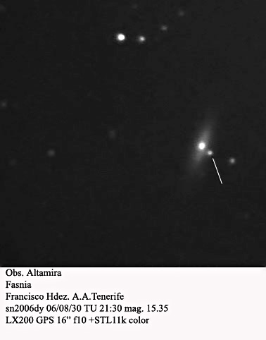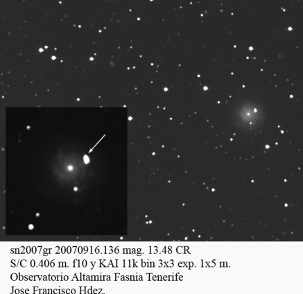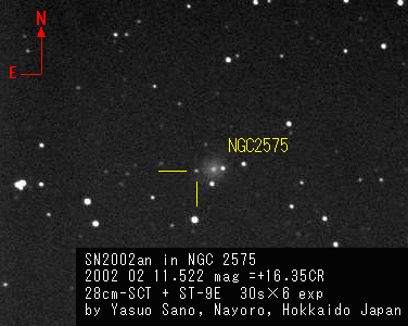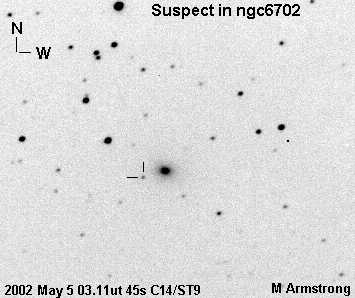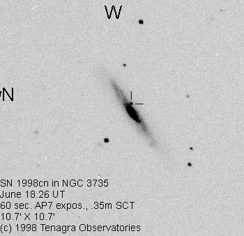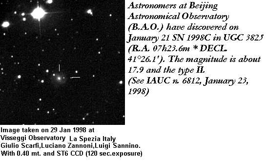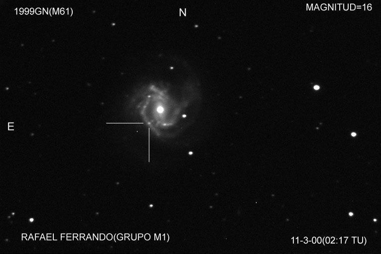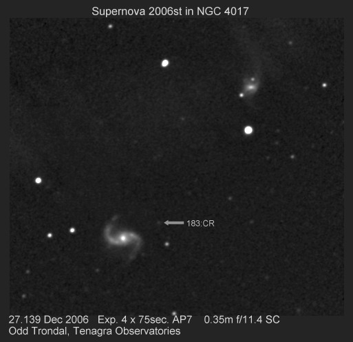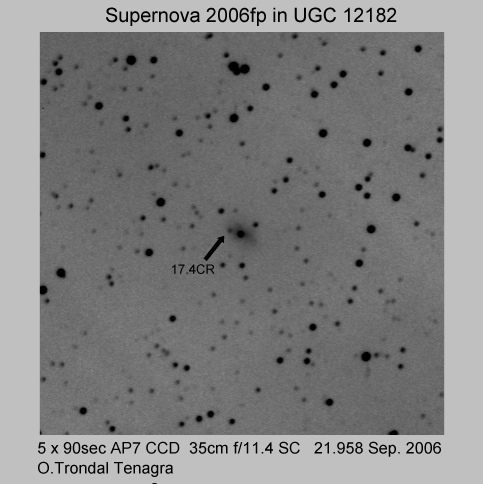 On this web page you will find a list of all the images that have been e-mailed to me for the Bright Supernovae webpages. If an image already exist on a web site, I will usually just create a link to it. However for people who do not have web sites I will accept images which I will then publish on my pages (which I sometimes crop). It should be noted that these images were given to me for use on the web page with the understanding that the copyright remains with the person who originally took them. My thanks to all of the people who donated images. For a list of the best SN images I have found out on the net, please check my Best SN images on the net page.