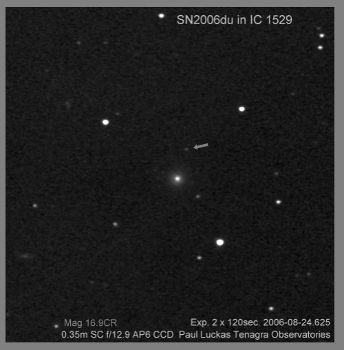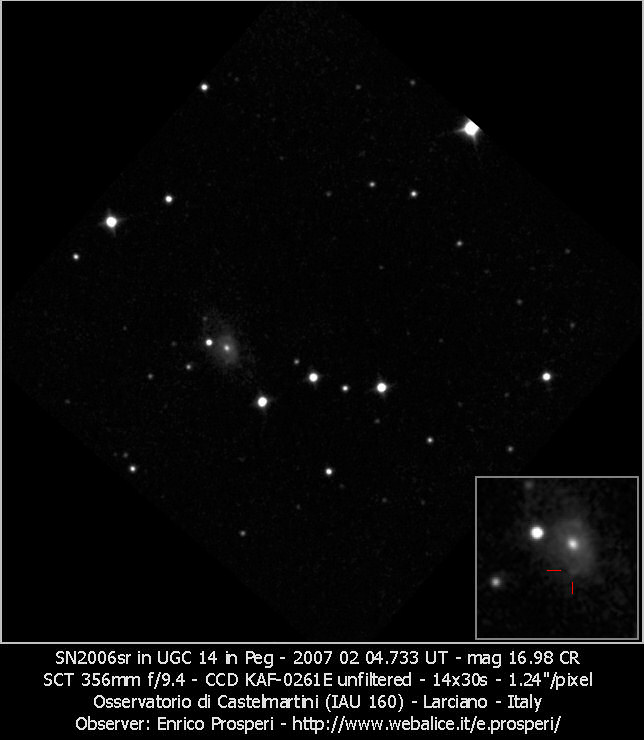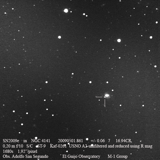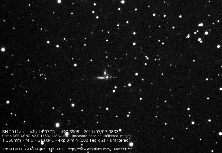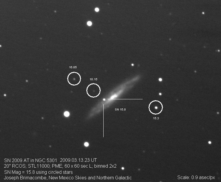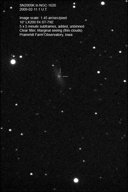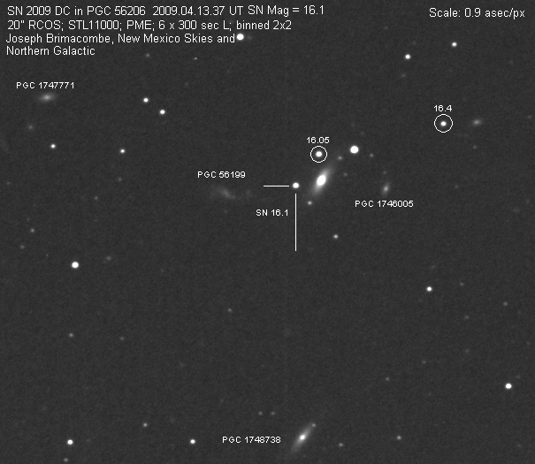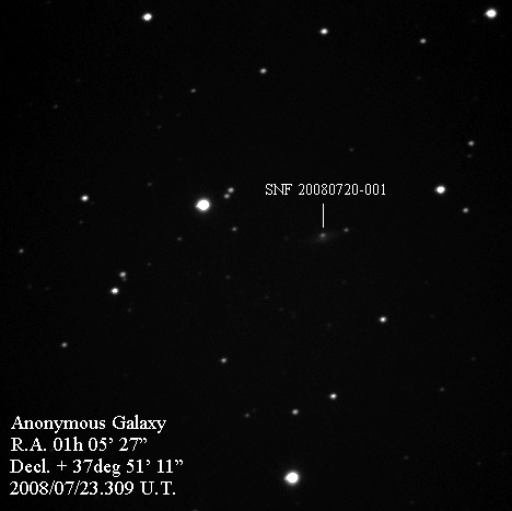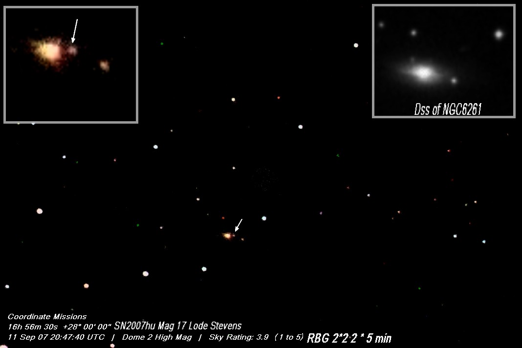 Image naming conventions: Normally I name them after the galaxy they are in, like n3080s1.jpg would read as "NGC 3080 supernova image 1". That carries to the odder galaxy names. If CBET does not give me a name, then I use the first one that comes up in NED. Oddly many of the PGC galaxy names I see in wikisky are not in NED (which is supposed to have all of them). If the galaxy does not have a name, then I named it after the SN name, sn09df2.jpg as "supernova 2009df image 2". For these CSS (and other survey) galaxies, I don't have that name, so I went to this convention: a1447p0958s1.jpg as "anonymous galaxy at 14:47 +09d58 supernova image 1".
