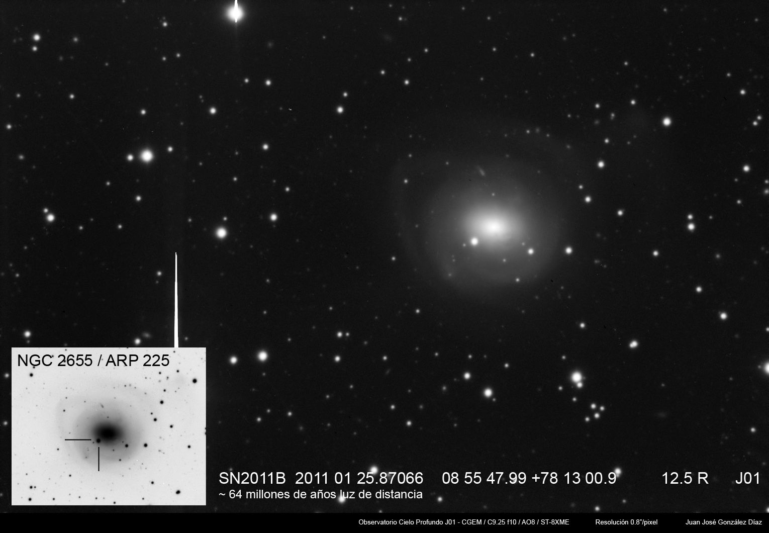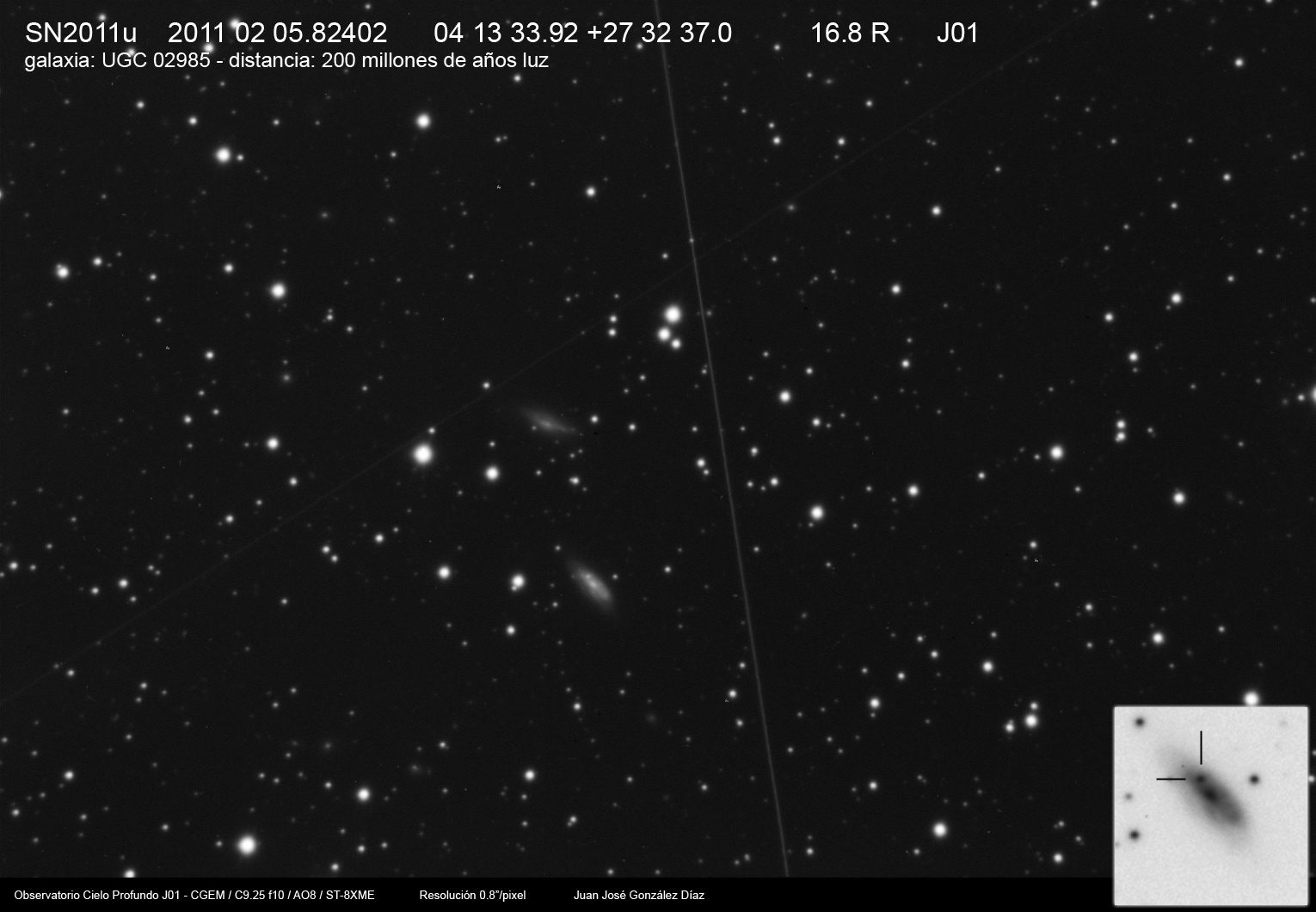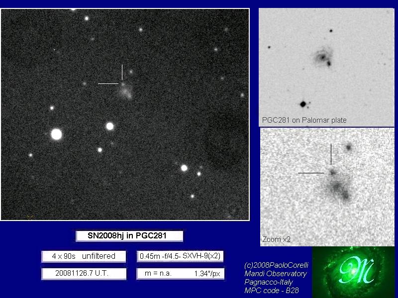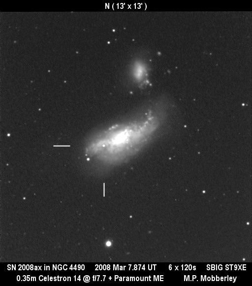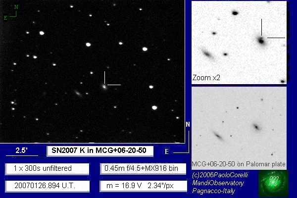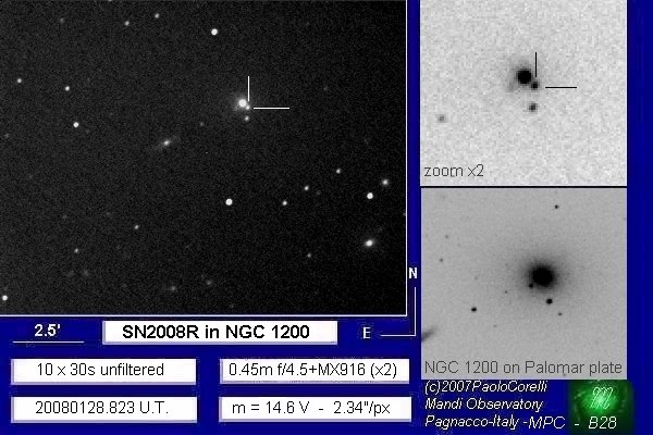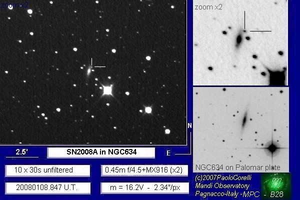 Image naming conventions: Normally I name them after the galaxy they are in, like n3080s1.jpg would read as "NGC 3080 supernova image 1". That carries to the odder galaxy names. If CBET does not give me a name, then I use the first one that comes up in NED. Oddly many of the PGC galaxy names I see in wikisky are not in NED (which is supposed to have all of them). If the galaxy does not have a name, then I named it after the SN name, sn09df2.jpg as "supernova 2009df image 2". For these CSS (and other survey) galaxies, I don't have that name, so I went to this convention: a1447p0958s1.jpg as "anonymous galaxy at 14:47 +09d58 supernova image 1".