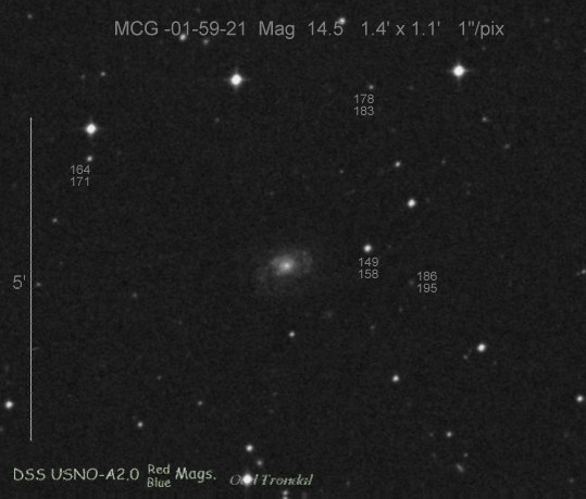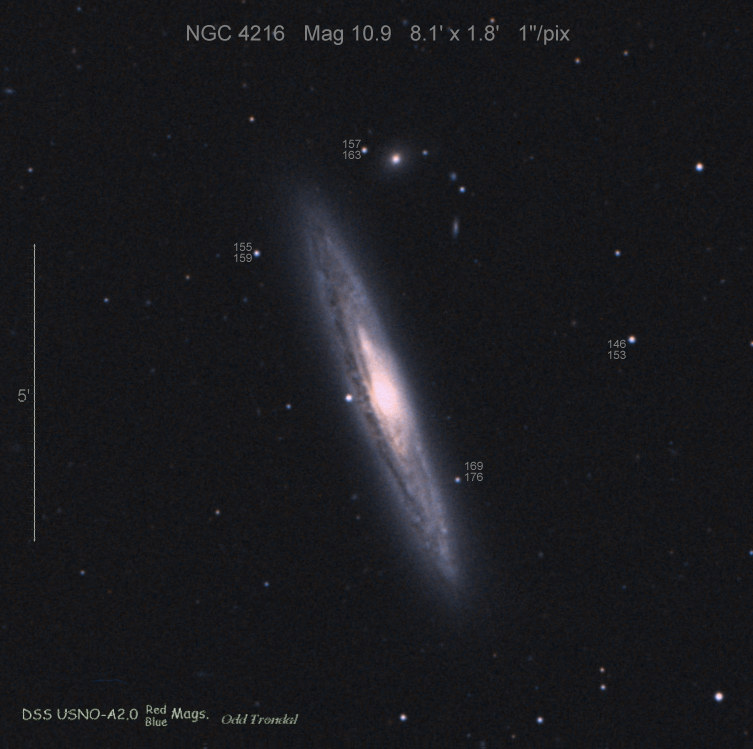 These images are done on the DSS image scale. Most Messier galaxies are done on a 2/3 scale, because the were large. The scale is as follows:
