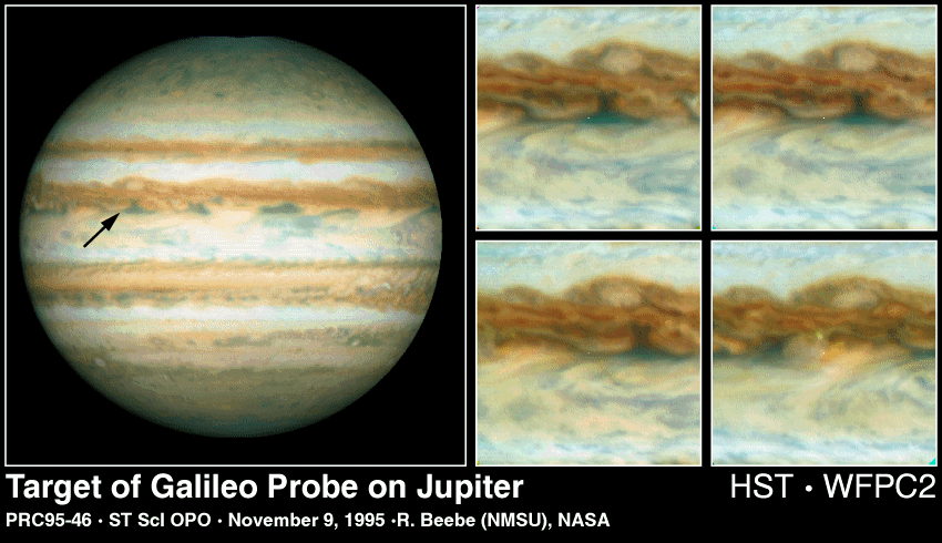 на Юпитере (белые пятна),