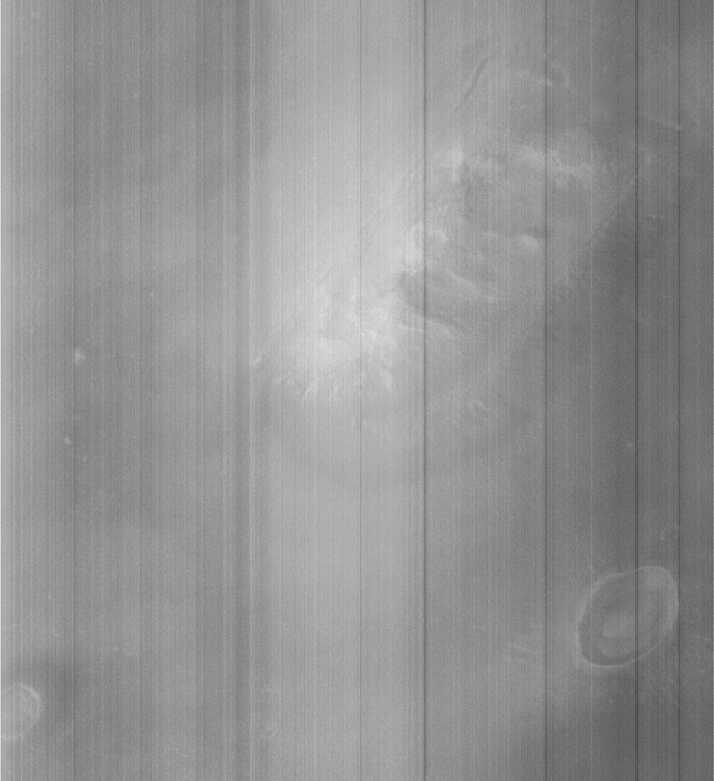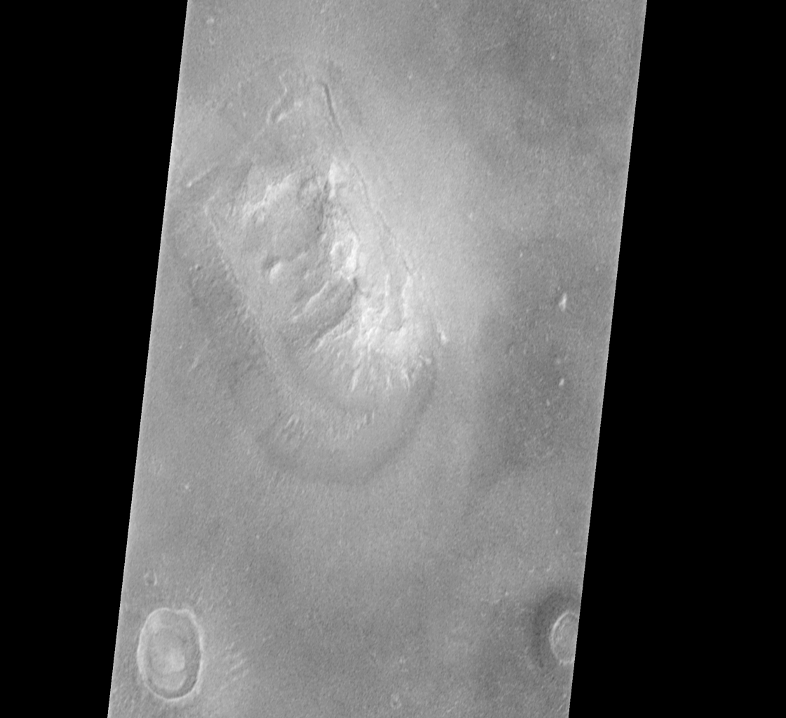 слева во всей красе показывает нам северную полярную шапку Марса. Фотография