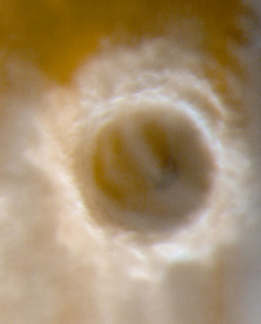 скрывающей детали поверхности. Здесь - марсианская зима. Кратер имеет 150
