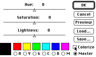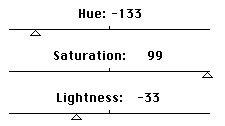The Hue/Saturation dialog with visual help for your edification (smooth in 24 bits)