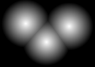 The effect is very simple in operation: the edges of the third sphere overlap previously drawn sections and since "Lighten Only" is selected, the blend tool simply stops sphere creation at those edges, resulting in a striking imitation of shaded balls joining in almost sensual ways.